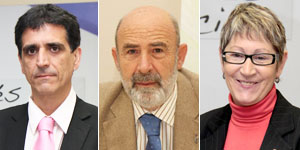 Antonio Cabrera (CCOO), Fernando Molina (CSIF) y Pilar Navarro (UGT).