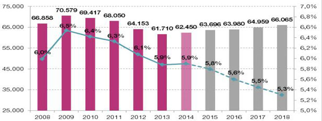 Y todo ello a pesar de que las previsiones indican que la economía española va a mantener un crecimiento sostenido durante los próximos años. "Se trata de una situación complicada que podría poner en riesgo la situación asistencial", avisa, y recomienda que se mantenga, al menos, la proporción alcanzada de 2013 del 5,9 por ciento, aunque lo ideal sería que creciera.