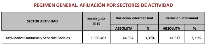 Tabla de afiliación a la Seguridad Social del sector sanitario.